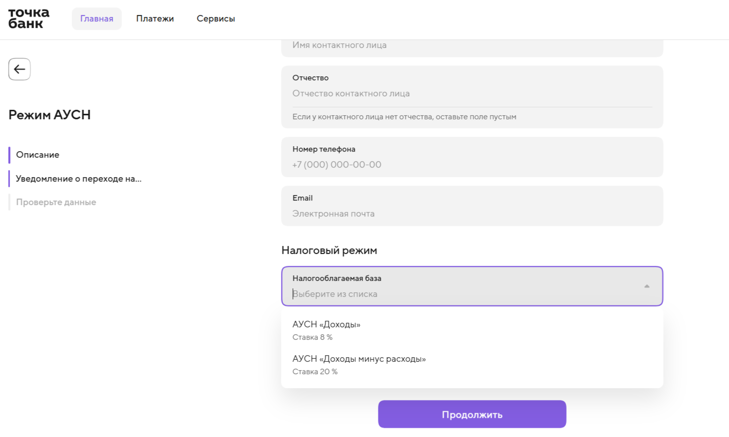 Как перейти на АУСН через Точка Банк