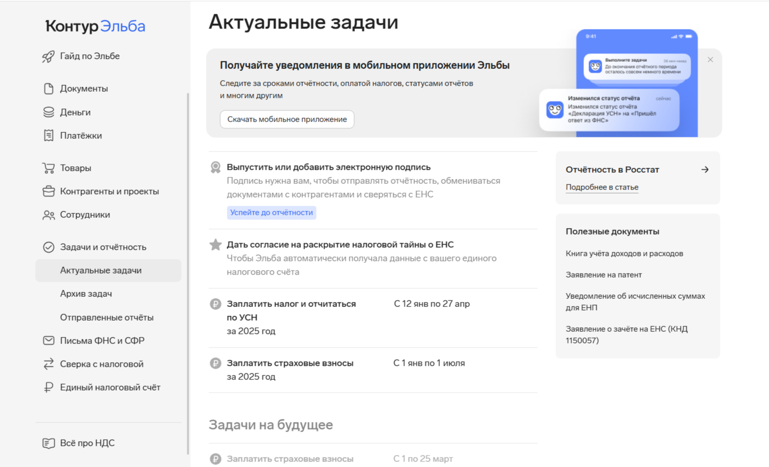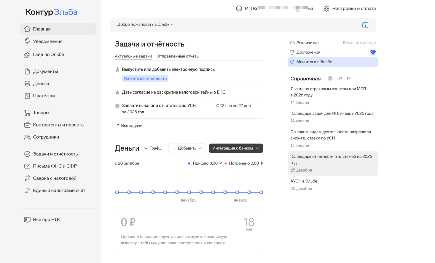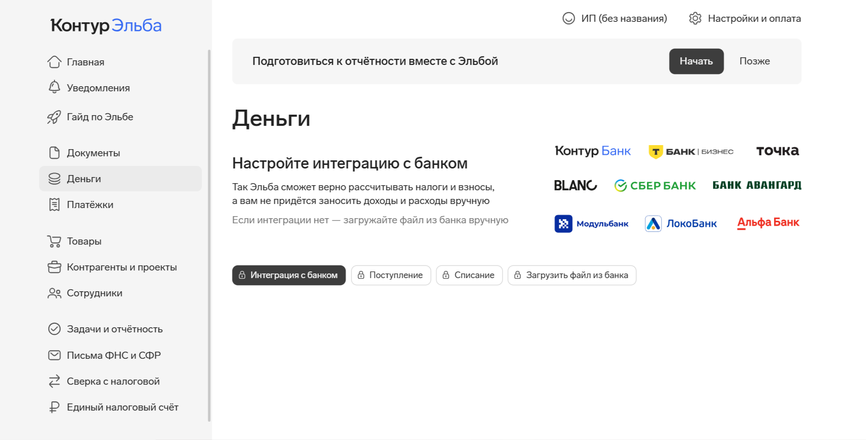 - Регулярно вносите операции — так Эльба всегда будет готова к отчётности.