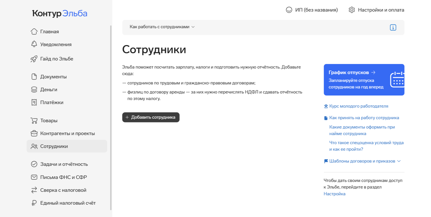 - Эльба автоматически подсчитает налоги и взносы на основе введённых данных;