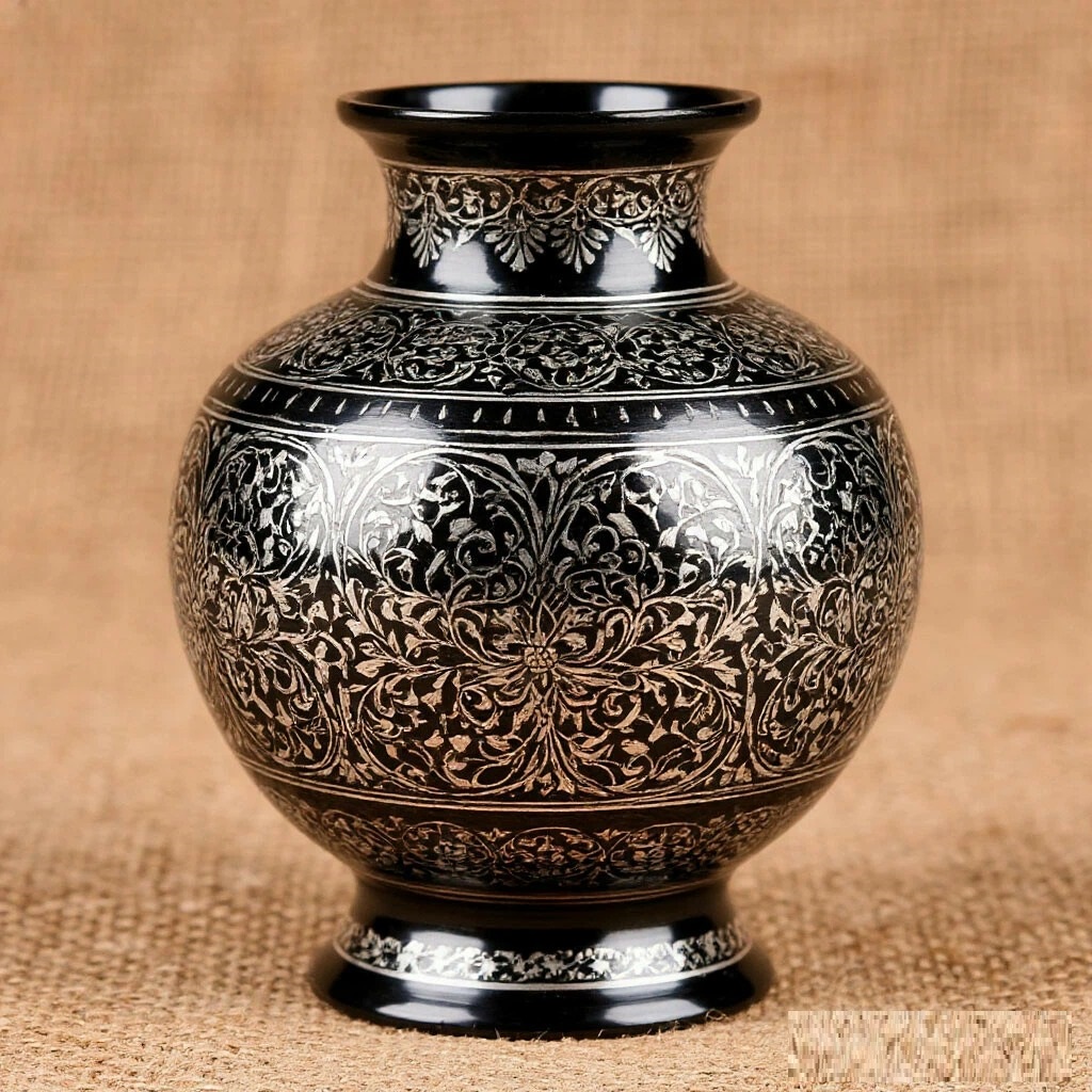 В индийском городе Бидар веками создают удивительные изделия из особого цинкового сплава. Поверхность чернят, а затем инкрустируют узорами из серебра или латуни. Контраст тёмного фона и блестящих линий выглядит роскошно, но воспроизвести эту технику в России непросто: нужны специфические материалы и глубокие знания технологии.