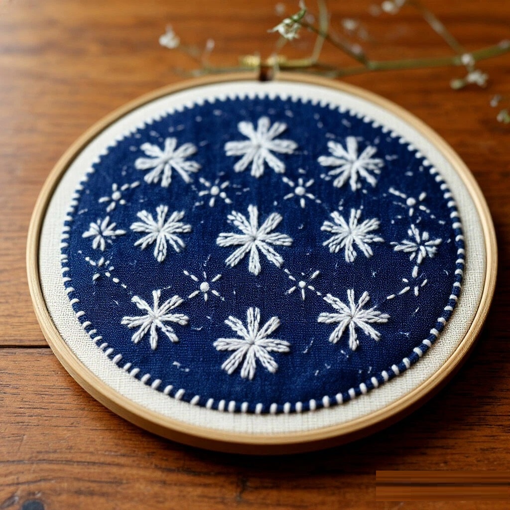 Представьте: вместо того чтобы выбросить джинсы с дырой на колене, вы превращаете эту дыру в произведение искусства. Именно этому учит сашико — традиционная японская вышивка белыми хлопковыми нитями по ткани цвета индиго. Изначально техника использовалась для укрепления рабочей одежды, а теперь стала частью тренда на осознанное потребление и минимализм. Геометрические узоры сашико лаконичны и легко вписываются в современный интерьер или гардероб.